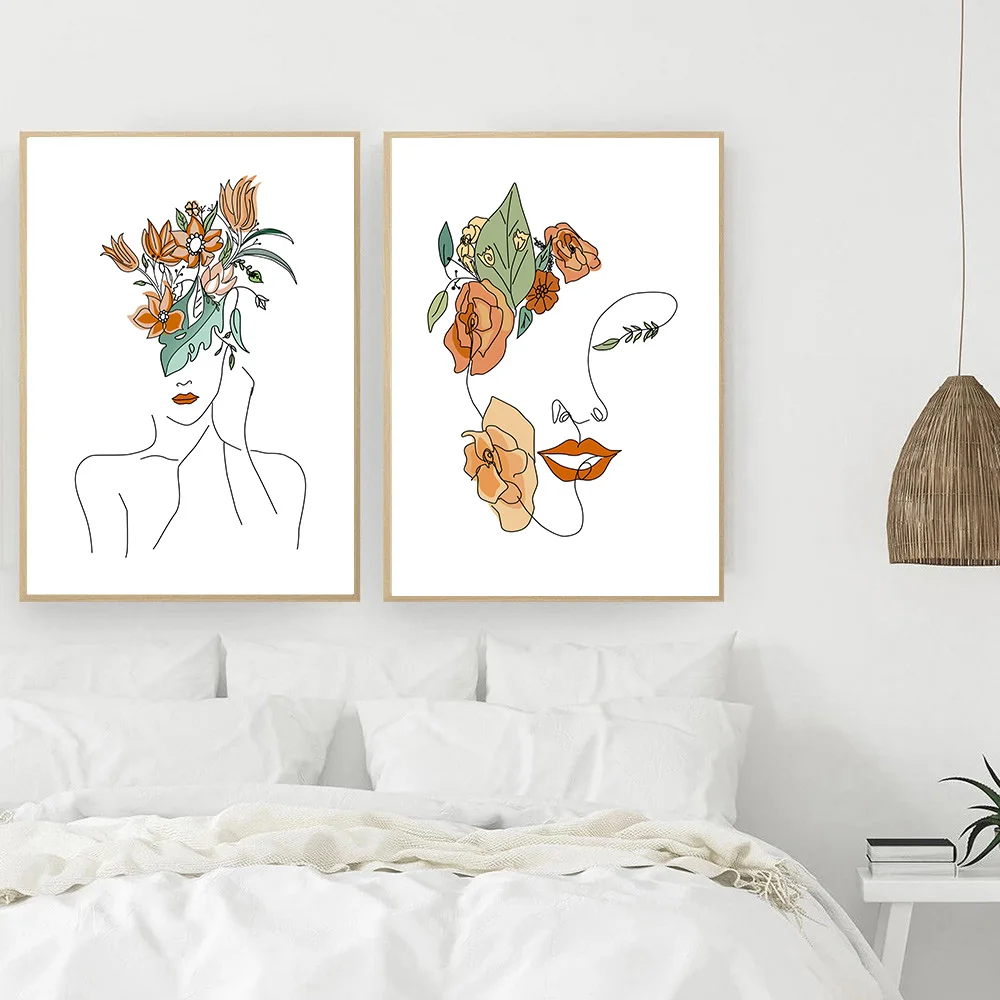 Абстрактная женщина, тело, одна линия, рисунок на холсте, цветок, м...