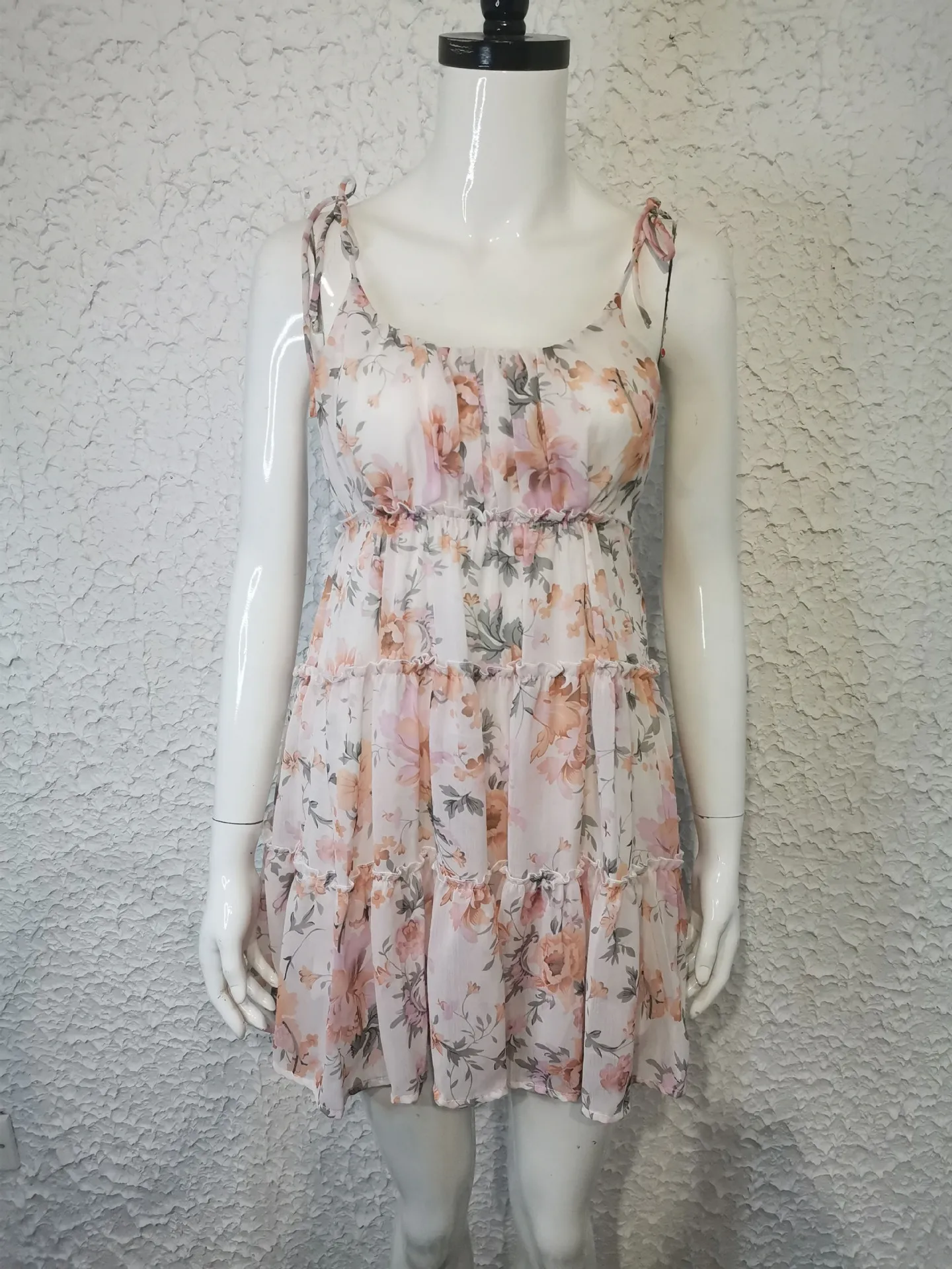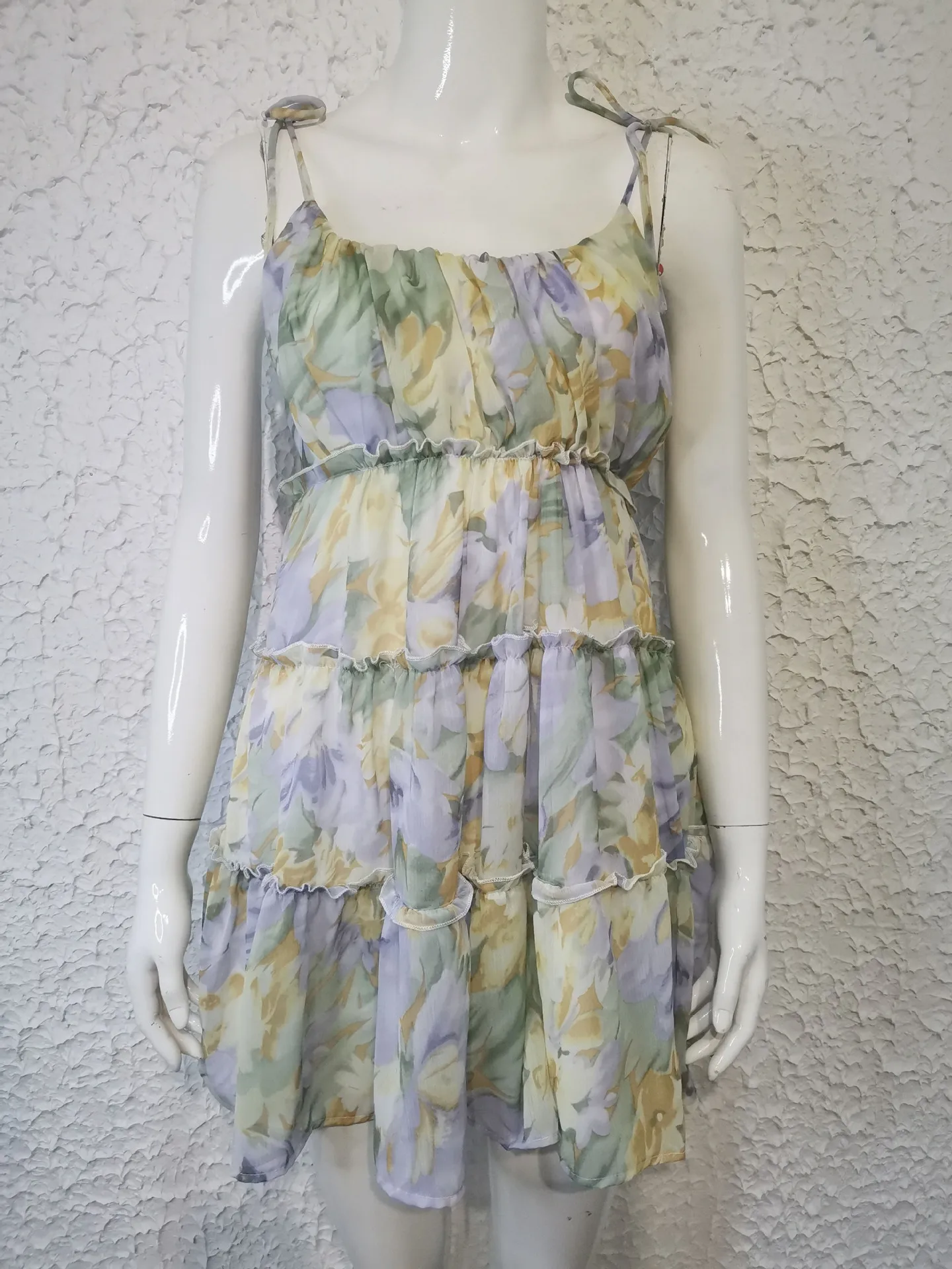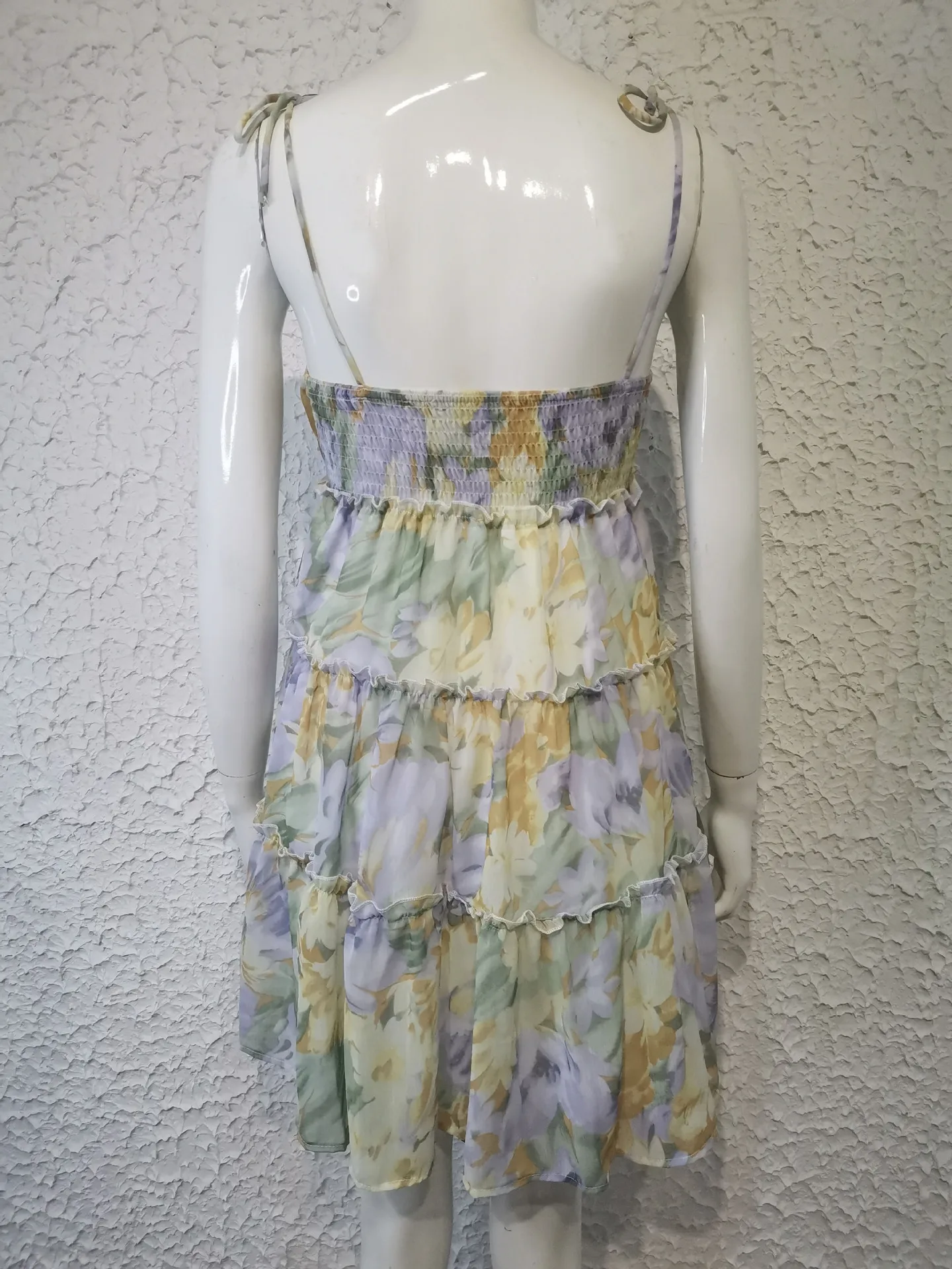 Платье женское пляжное с лямкой на шее, Удобный Повседневный сетчатый Мини Сарафан с цветочным принтом, на бретелях-спагетти, на лето