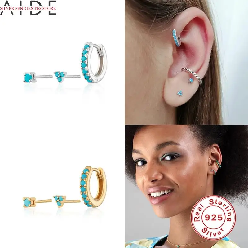 Женские серьги-гвоздики из стерлингового серебра 100% пробы с разно...