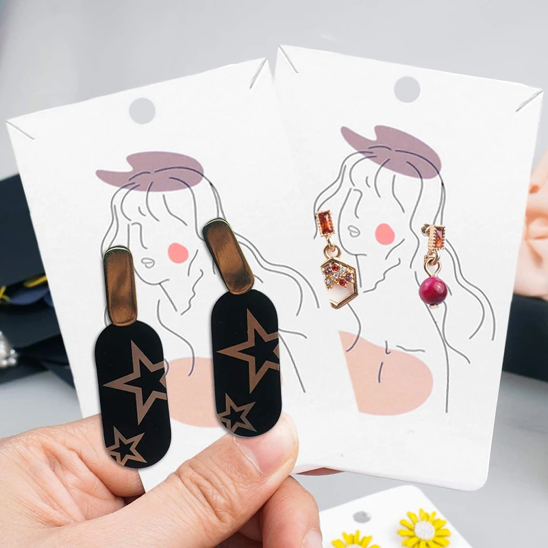 Бирки для серег с узором разных цветов 20100 шт., бумажные карточки для ожерелий, визитные карточки, ярлыки для ювелирных изделий, подвесные ярлыки для упаковки бижутерии