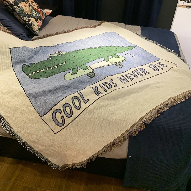 Новодический зеленый крокодиловый плед, покрывало для дивана с многофункциональными буквами, покрывало для дивана, пылезащитный чехол с кисточкой, настенный подвесной гобелен