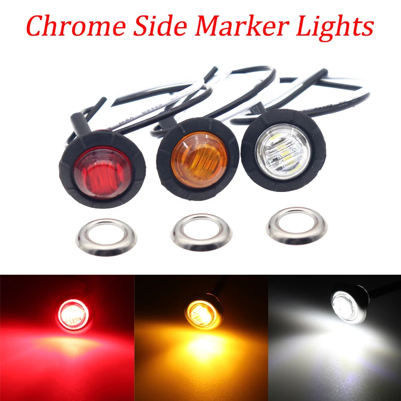 Водонепроницаемый 2 шт. 12V 3LED 34 "Круглая Хромированная прицеп боковые габаритные огни, желтый красный грузовики трактора Габаритные огни Светодиодные лампы в форме пули