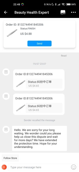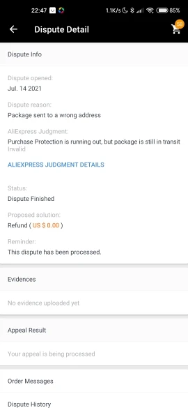 Поставщик отменил заказ и сообщил мне, что это было связано с таможенными проблемами, я никогда ничего не сообщал мне, я должен был спросить его о том, что я открыл спор, и они вернули деньги.