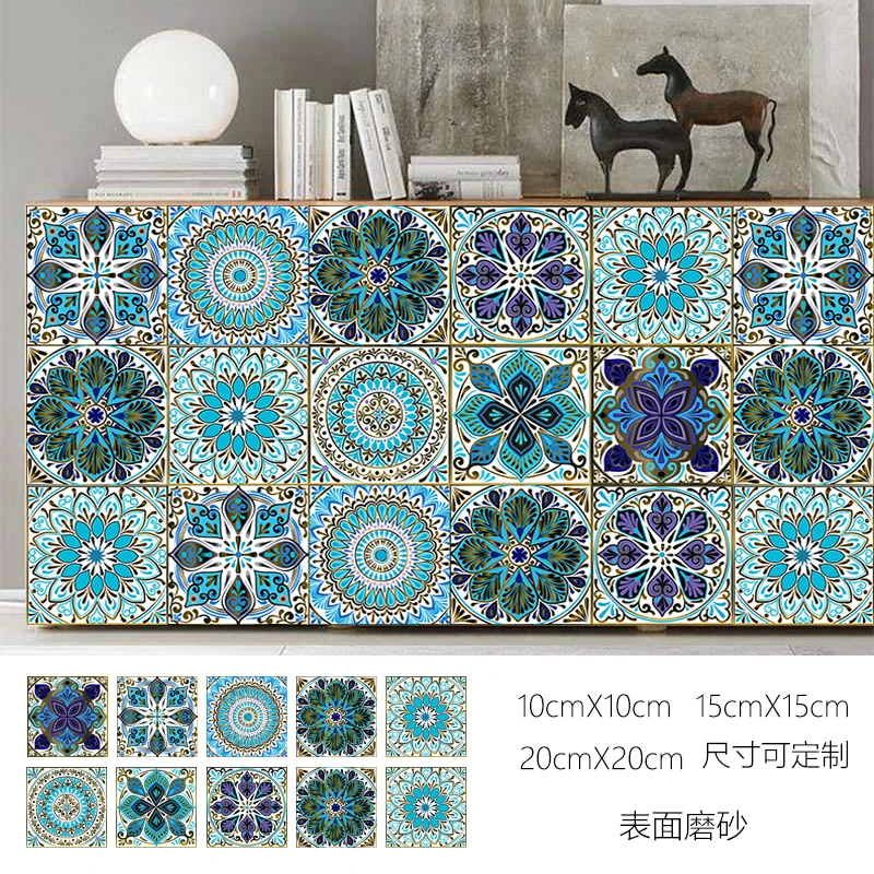 Мечта синяя Мандала стиль матовая поверхность Наклейка на стену плитка украшение пленка для плитки/земля в кухне ванная комната пол художественная роспись