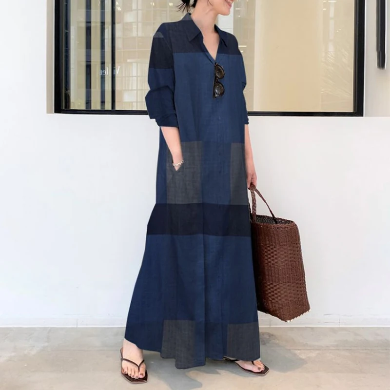 Повседневное длинное платье-рубашка, новинка, женская одежда на весну и осень, модное простое свободное платье с отложным воротником, длинным рукавом, карманами и темным принтом