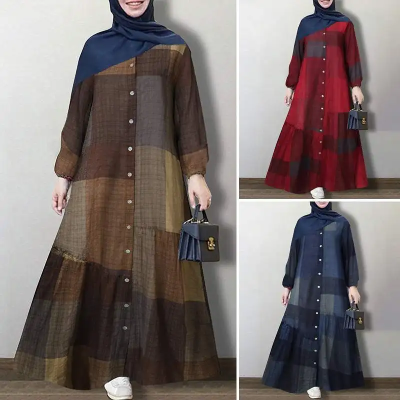 Платье ZANZEA женское в мусульманском стиле, винтажный клетчатый дл...