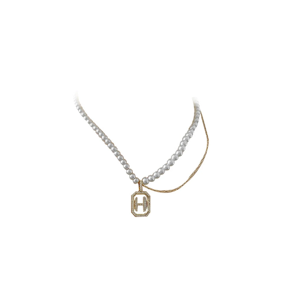 Новинка 2021, жемчужное ожерелье с буквой H, ожерелье с кулоном, индивидуальное ожерелье из сетчатого красного металла, Женское Ожерелье