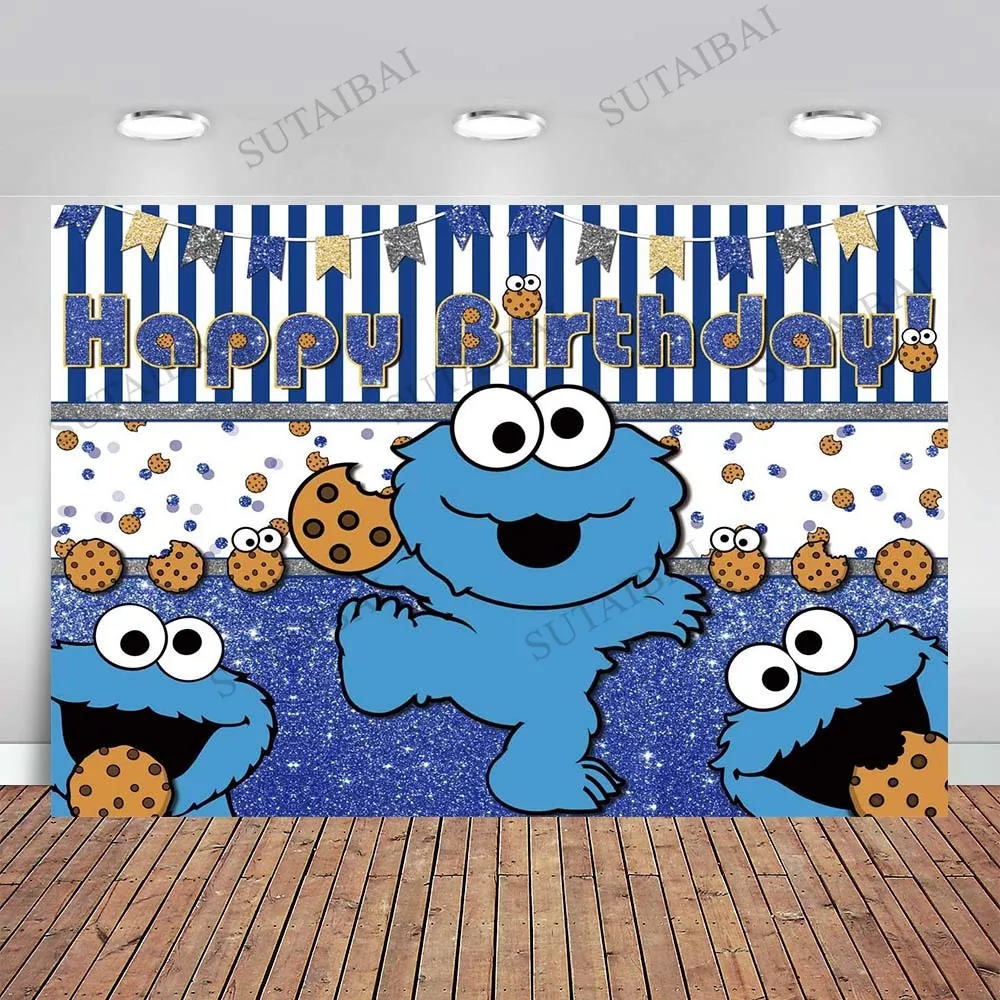 Печенья монстров на день рождения фон с героями Улица Сезам тема День Рождения вечерние пользовательский рекламный баннер детский фон для фотосъемки с изображением Украшения Опора