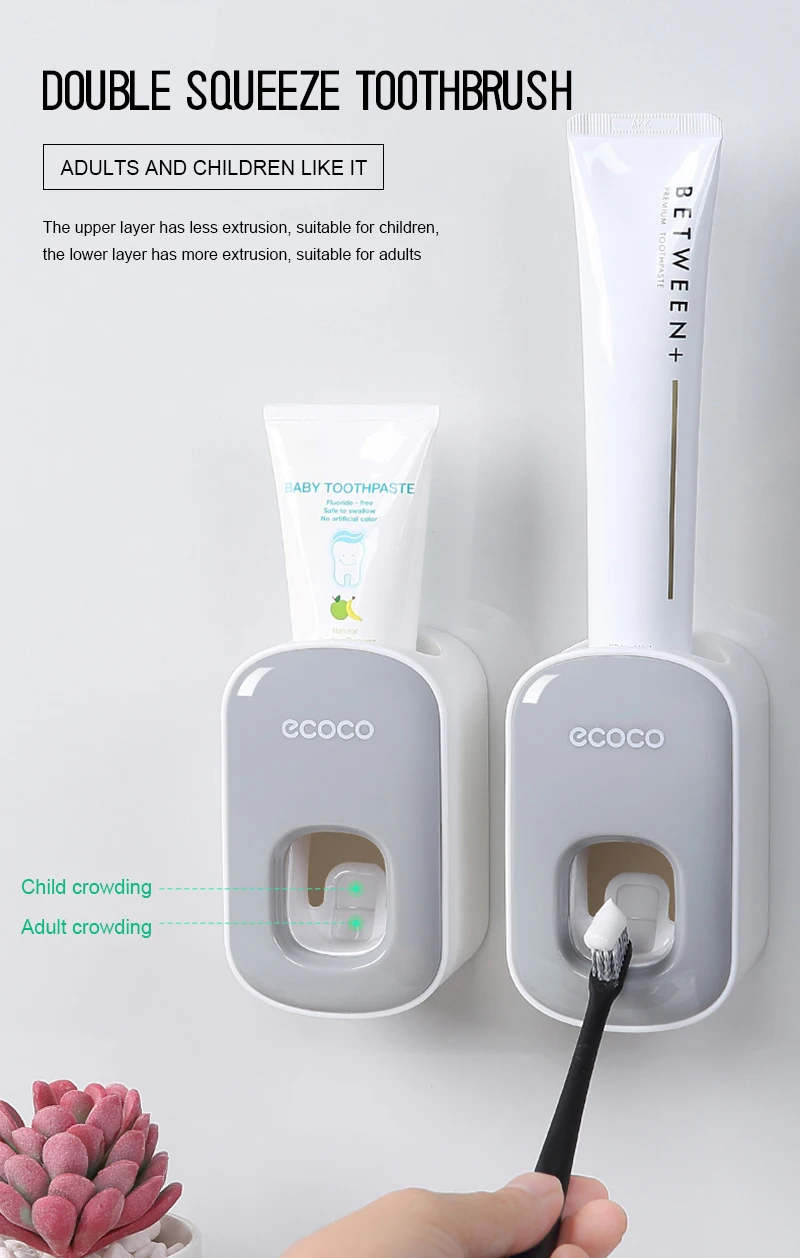 Набор аксессуаров для ванной комнаты, автоматический диспенсер для зубной пасты, пыленепроницаемый держатель для зубной пасты, сжималки для зубной пасты, черныйсерый цвета