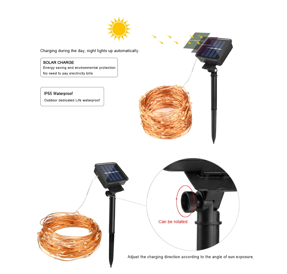 Светодиодный светильник, изготовлен из тонкой гибкой медной проволоки, которая может соответствовать любой форме, которую вы хотите, и добавить красивый декоративный акцент.Работающий на солнечной энергии, встроенный светильник, заряжается в дневное время и автоматически включается ночью. 2 режима в наличии: вспышка и постоянное включение. (Есть режим и кнопка питания на задней панели солнечной панели)Поместите светильник в стеклянную бутылку, чтобы бутылка стала прекрасным декоративным ремесленным светильник!Изготовлен из высококачественной медной проволоки, гибкий, IP65 водонепроницаемый, прочный для ежедневного использования.Низкая теплоотдача, энергосберегающая и Экологически чистая, безопасная в использовании.Идеально подходит для размещения освещения в любом декоративном или праздничном стиле, подходит для вечерние, квадратные, садовые, внутренние украшения, наружные украшения и т. Д. Спецификация:Тип: светодиодный светильник на солнечной батарееМатериал: медная проволока, пластикИсточник питания: СолнечнаяКоличество СВЕТОДИОДНЫЙ: 50 светодиодный s/ 100 светодиодный s/200 светодиодный sСветильник Цвет: теплый белый/синий/фиолетовый/RGB (красный-зеленый-синий)Светильник режим: 2 модели (горит и вспышка)Датчик: светильникПанели солнечные: 2В, 170mAБатарея: AA Ni-MH аккумуляторДлина: 5 м/10 м/20 мВремя зарядки: 6 ~ 8 чВремя работы: постоянное включение: 8-12 ч; Вспышка: 10-15 чВодонепроницаемость: IP65Сертификация: CE, RoHS Посылка:1 * Светодиодный светильник из меди1 * подставка (высота 11 см)1 * шип (высота 10 см)1 * Руководство пользователя на английском языке1 * коробка для посылка