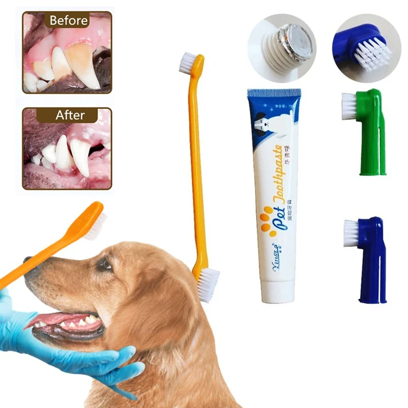 Зубная паста для домашних животных, набор зубных щеток для чистки полости рта собак, говядина, ваниль, вкус зубной пасты, набор для ухода за пальцами