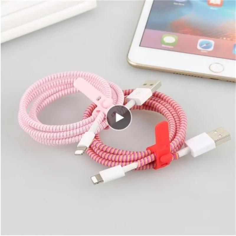 Устройство для намотки кабеля для передачи данных и зарядки, защитный чехол с пружинной веревкой, шпагат 1,4 м, многоцветная защита от ударов и грязи для IPhone, Android