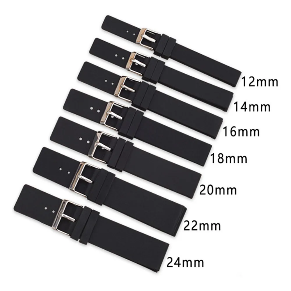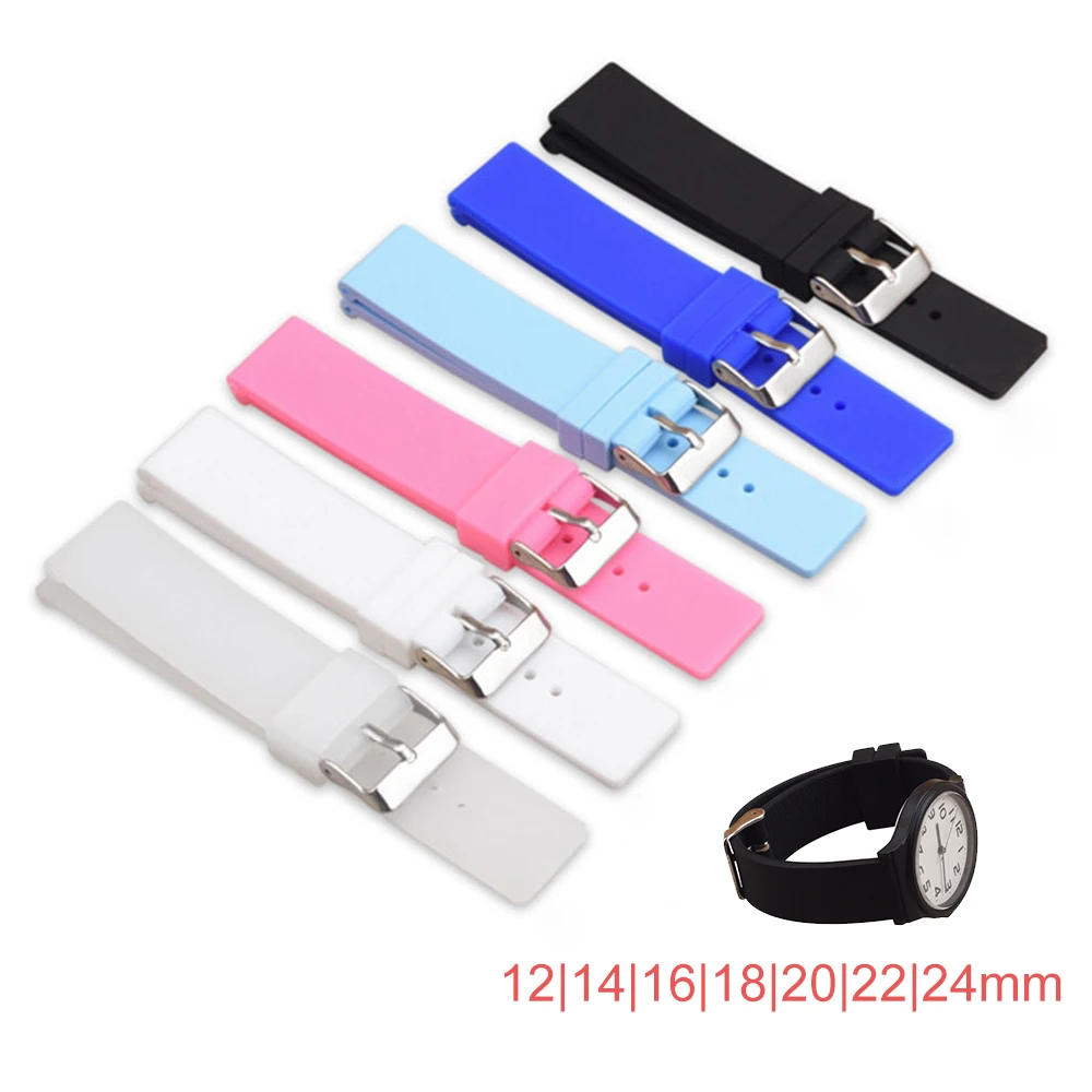 Ремешок спортивный силиконовый для мужских и женских наручных часов, универсальный резиновый браслет, аксессуары для часов, 12 мм 14 мм 16 мм 18 мм 20 мм 22 мм 24 мм