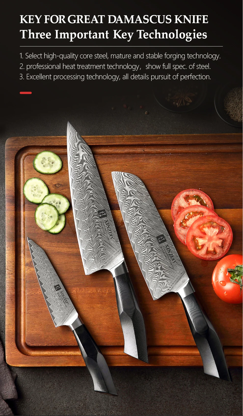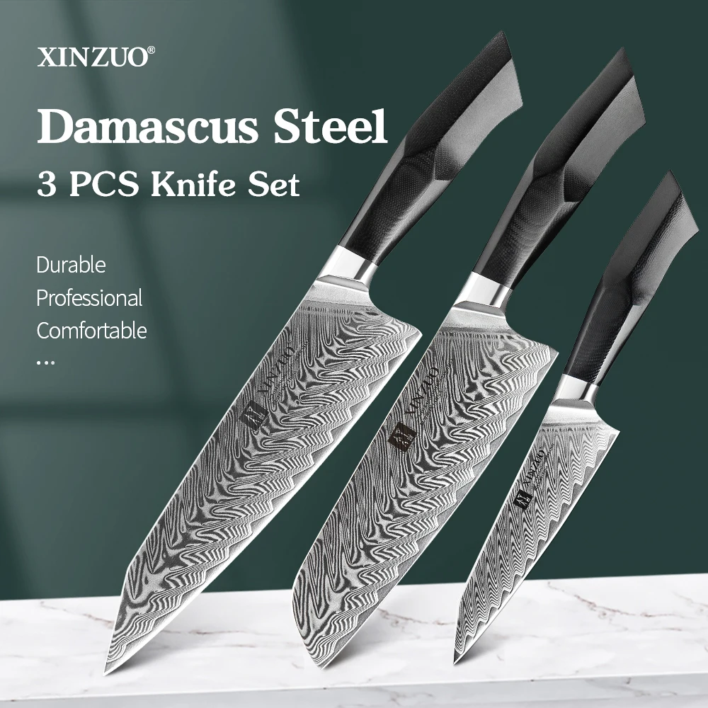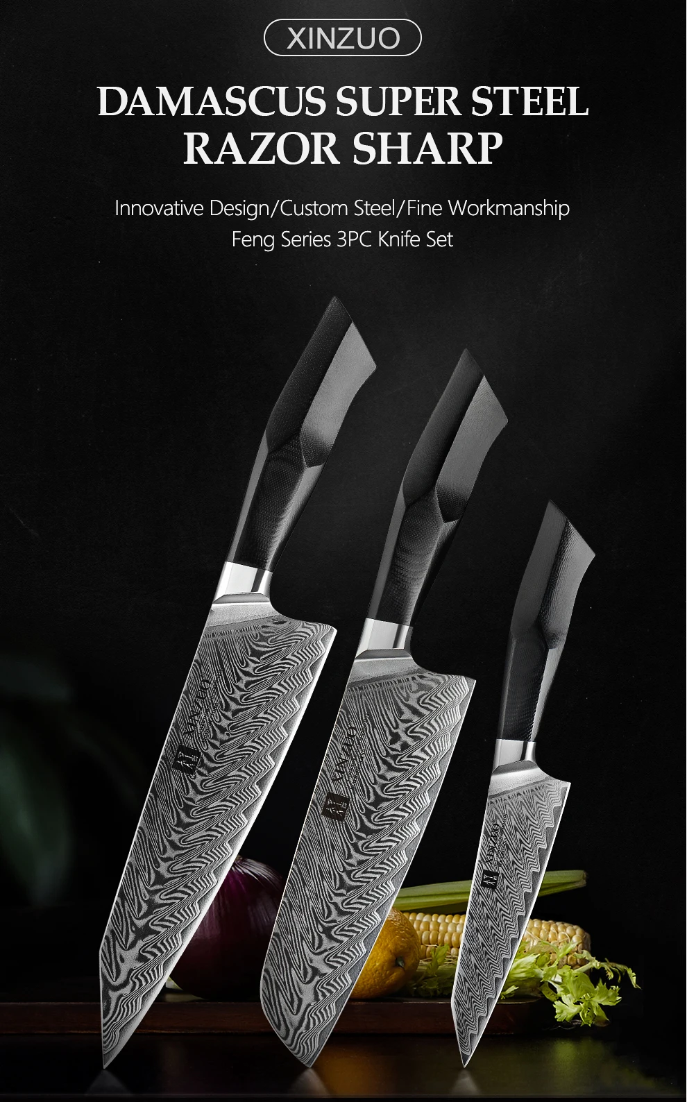 XINZUO Feng серии 3 шт Дамасская сталь набор ножей