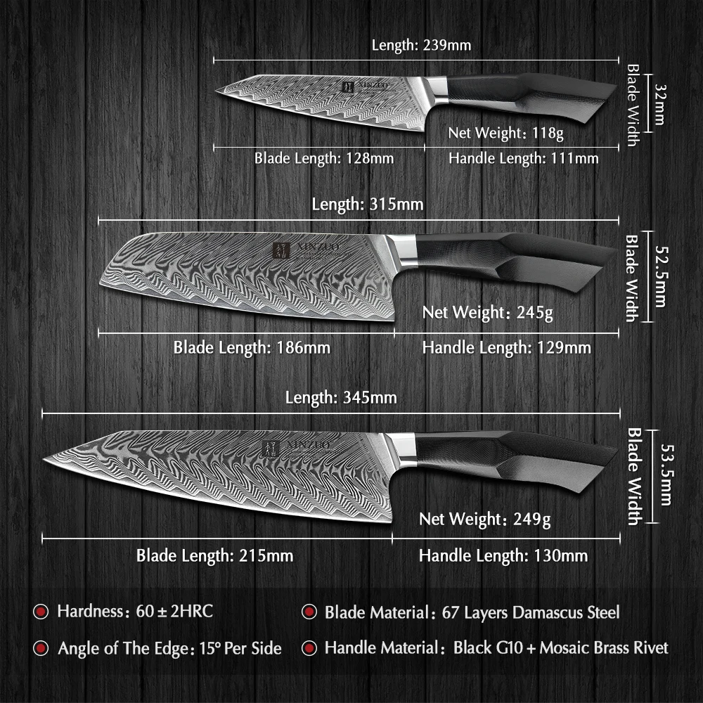 XINZUO 3 шт. набор VG10 67 слоев Janpanse Дамаск Сталь Нержавеющаясталь Сталь утилита Santoku шеф-повара Ножи Кухня комплекты мясо G10 ручка