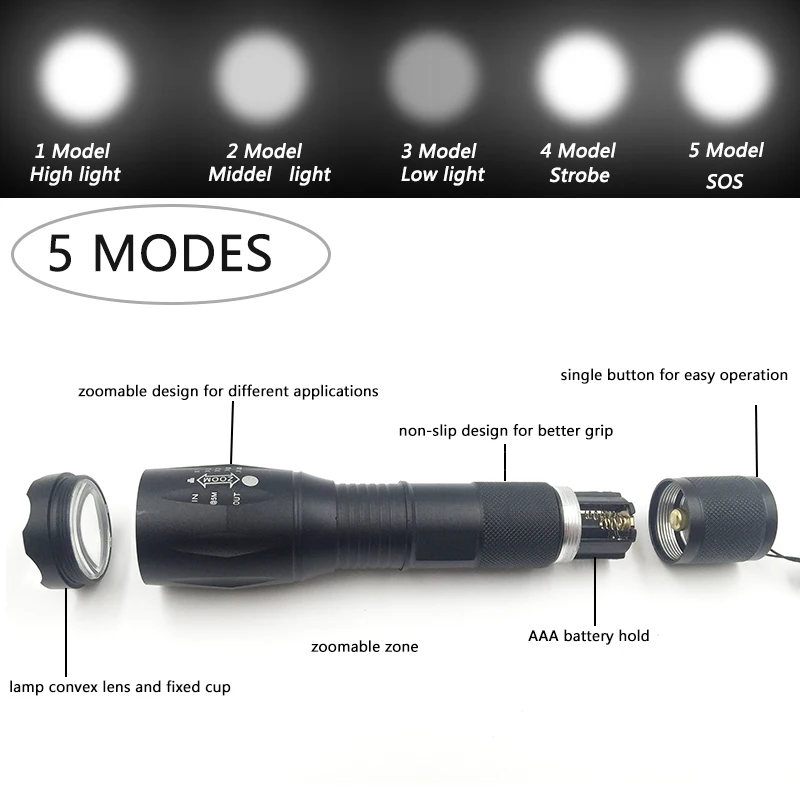 • Режим:5 режимов (высокий-средний-низкий-SOS-Стробоскоп)
