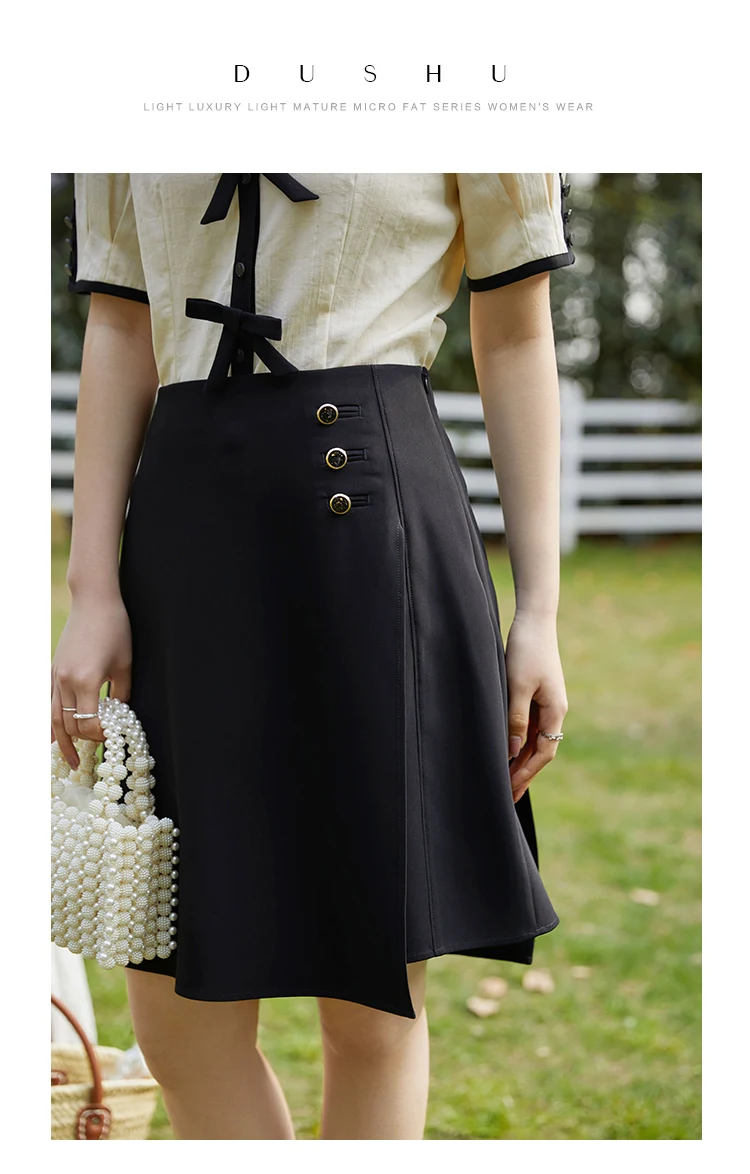 ZIQIAO, Женская Асимметричная черная юбка трапециевидной формы с вы...