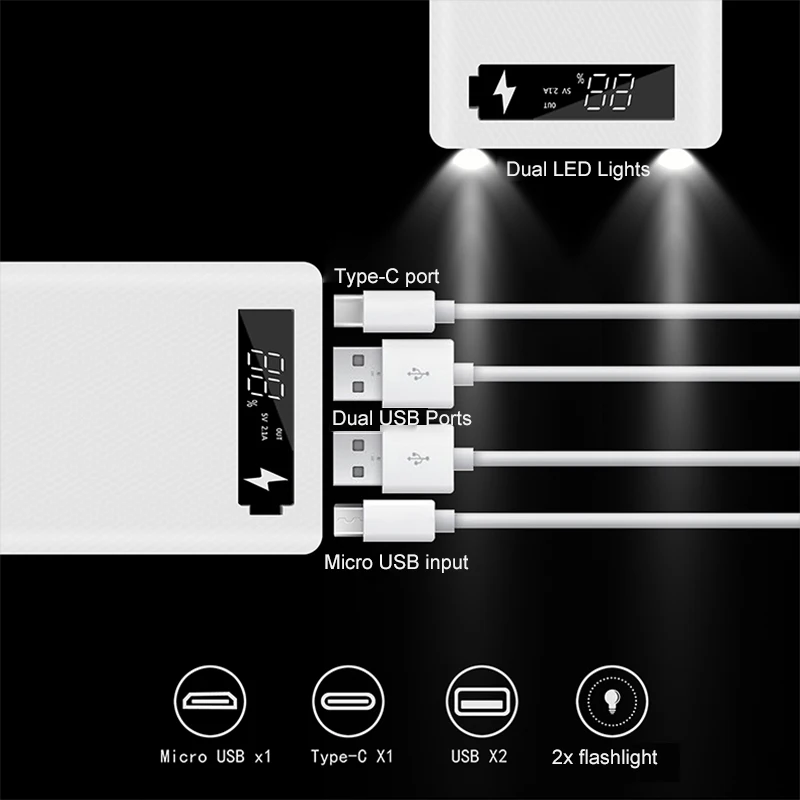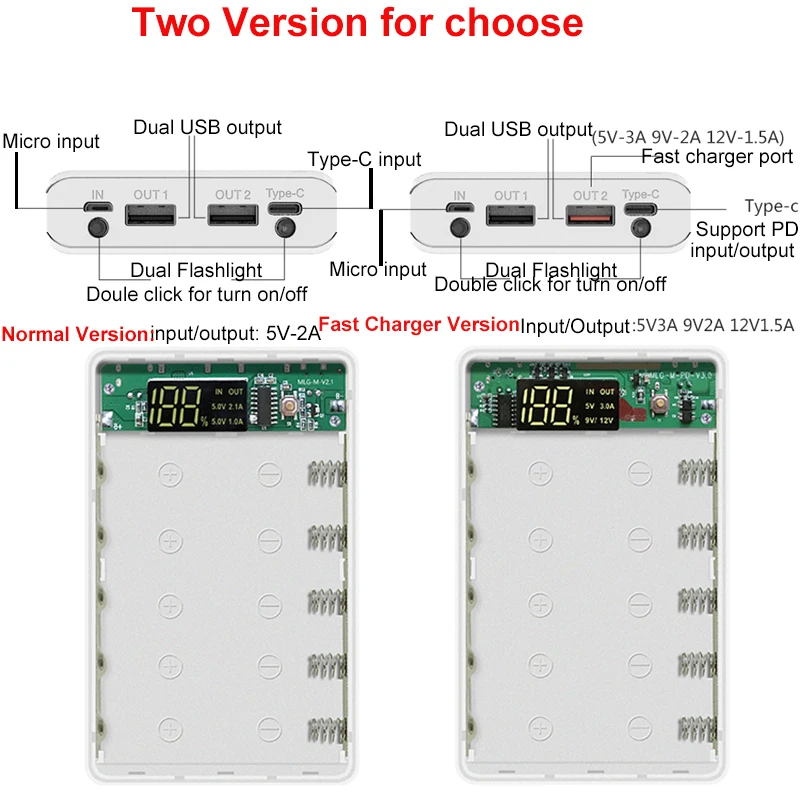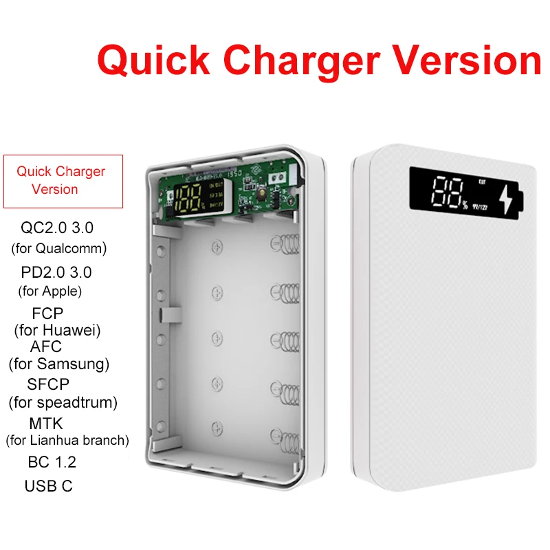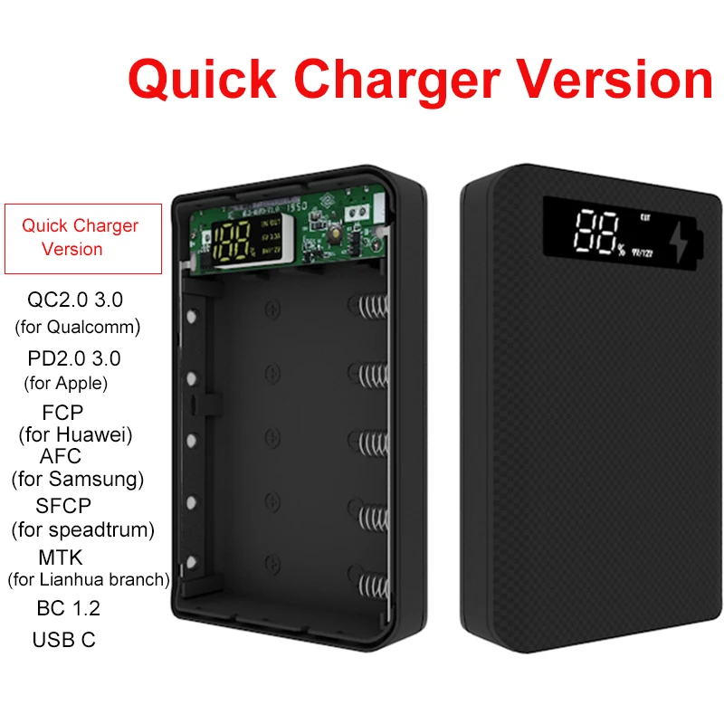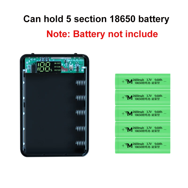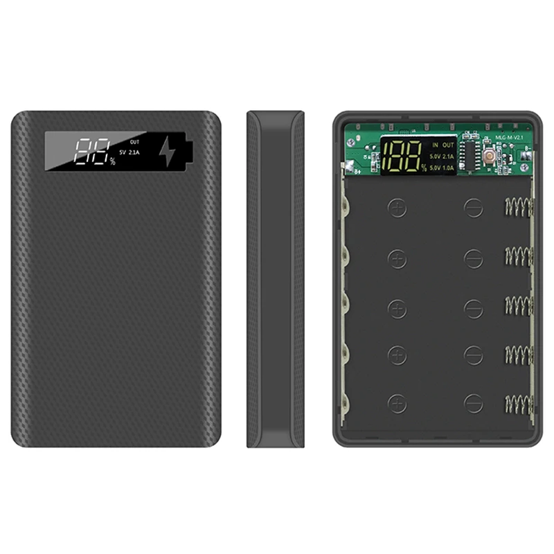 Чехол для внешнего аккумулятора 5*18650, 5 В, два USB-порта с цифровым дисплеем, поддержка быстрой зарядки, держатель аккумулятора 18650