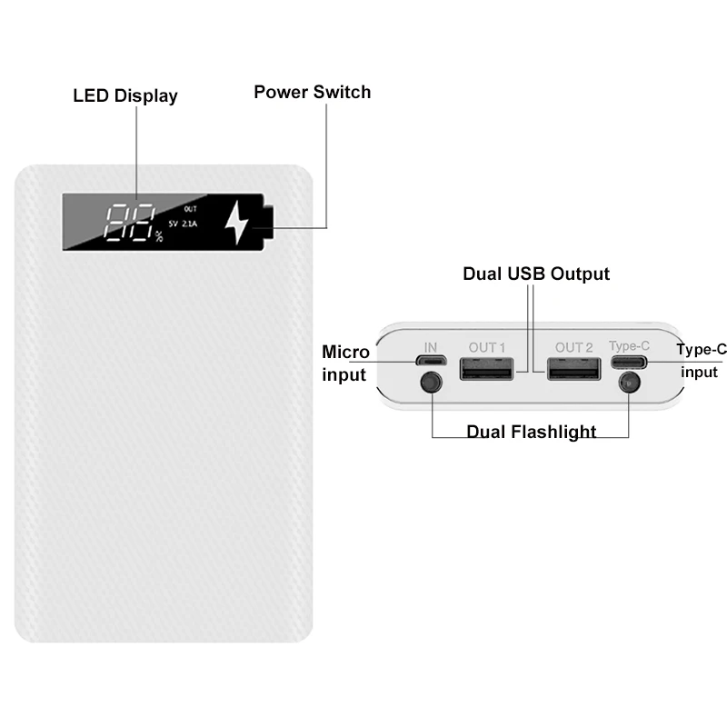 Примечание: Если светодиодный дисплей иногда не отображается, пожалуйста, не волнуйтесь. Это нормальное явление, потому что батарея установлена в начале и не может точно определить, сколько там энергии. Для большей точности необходима циркуляция. Особенность: С функцией защиты от обратного хода Вход: 5V2A Выход: 5V2A Размер: 11,8*8*2,3 см Цвет: белый, черный, розовый, синий Аккумулятор: 5*18650 Совместимость: смартфон и планшет 99% Напряжение аккумулятора: 3,2-4,2 в Примечание: Используйте только плоский аккумулятор 18650 Поверхность аккумулятора повреждена и не может использоваться Остроконечные батареи не могут использоваться Не применимо к батареям AAA и батареям AA Посылка 1 чехол для внешнего аккумулятора (батарейки в комплект не входят)