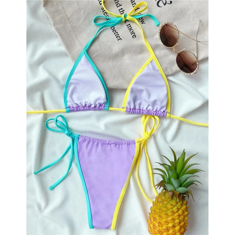 Купальник женский с чашками пуш-ап, пикантный бикини, стринги, комплект для плавания в бразильском стиле, пляжная одежда для купания, лето 2021