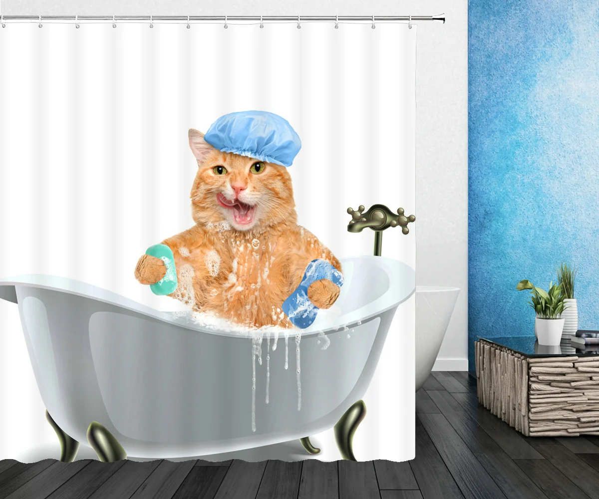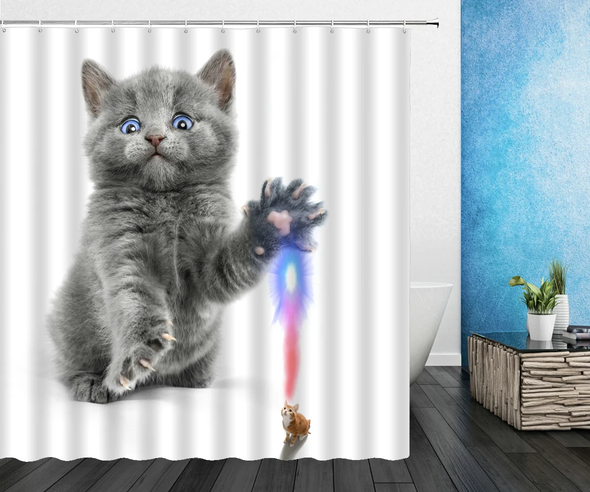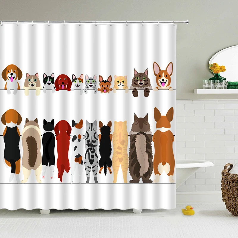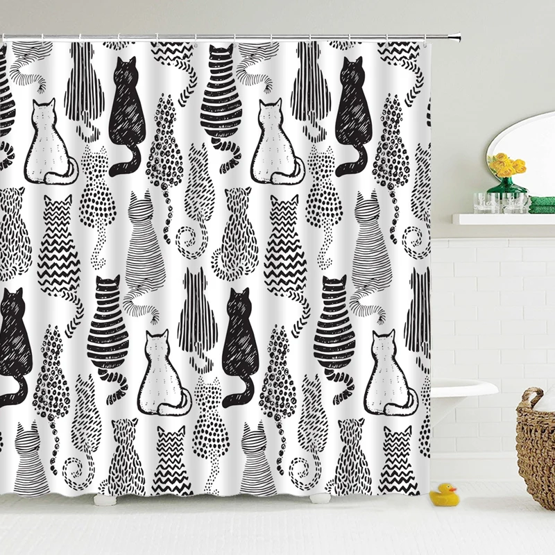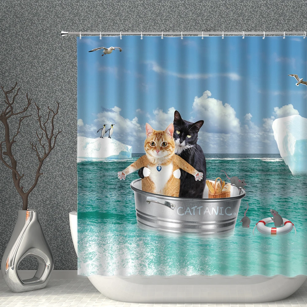 Занавеска для душа в виде кошки, занавеска для душа в ванную комнату, забавная Водонепроницаемая 3D занавеска для душа с крючками или ковриком
