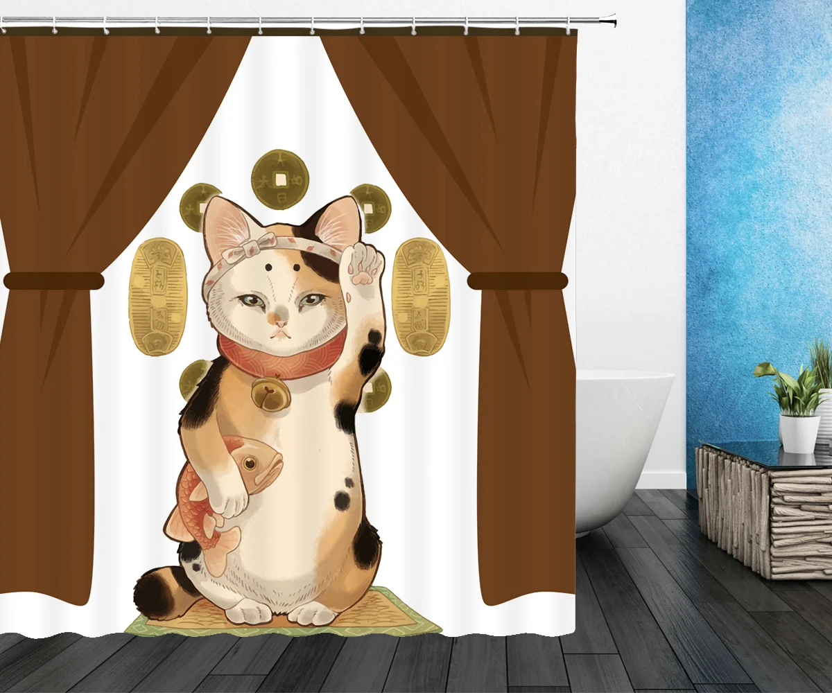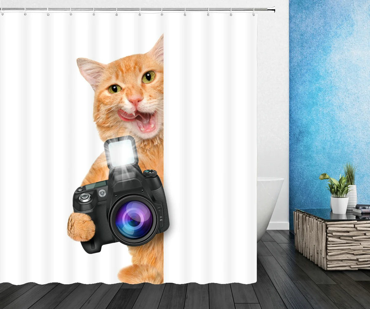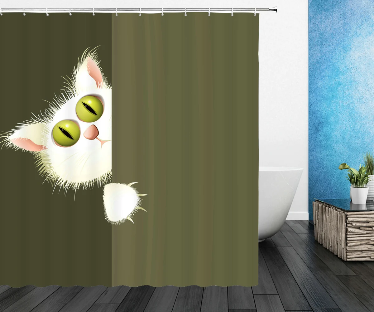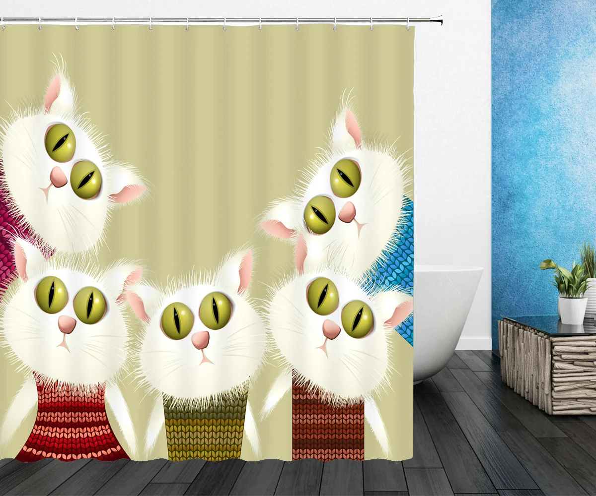 Занавеска для душа в виде кошки, занавеска для душа в ванную комнату, забавная Водонепроницаемая 3D занавеска для душа с крючками или ковриком