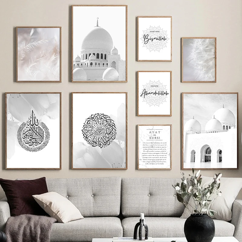Исламские плакаты и принты, белый цветок для строительства, мусульманский Коран, настенная Картина на холсте, мечеть, марокканские картины для домашнего декора icon star icon star icon star icon star icon star