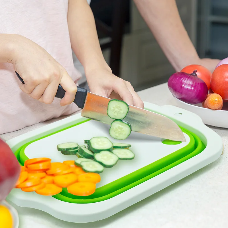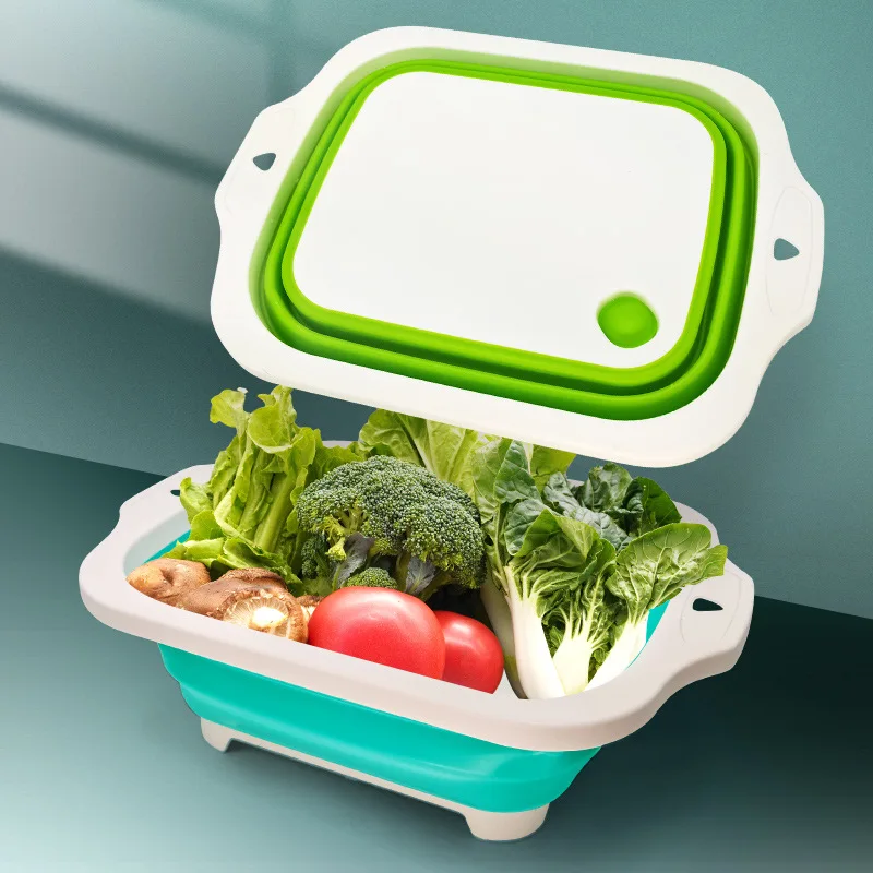 Многофункциональная Складная разделочная доска, складывающаяся разделочная доска, корзина для слива, моющееся сито для овощей, Кухонное портативное хранилище