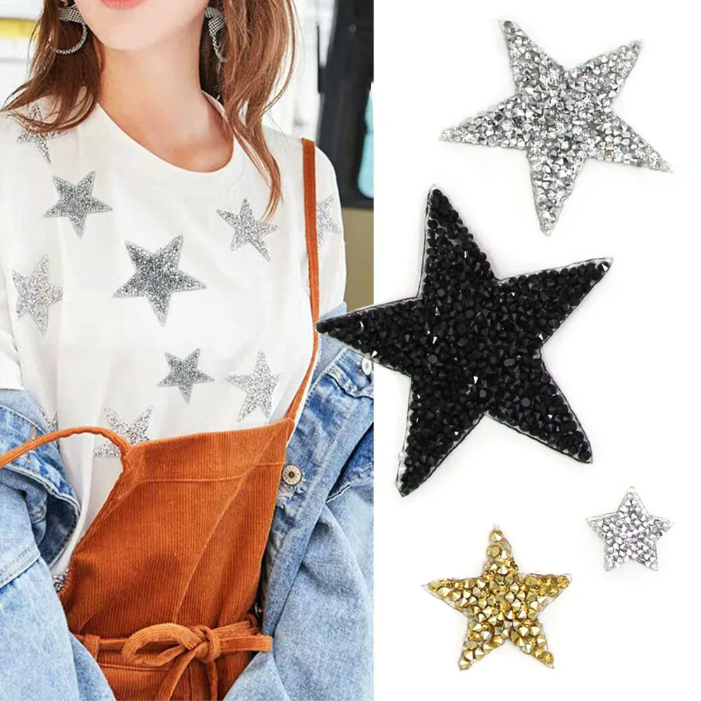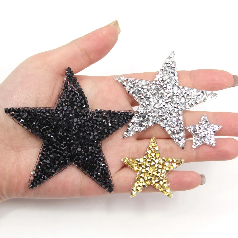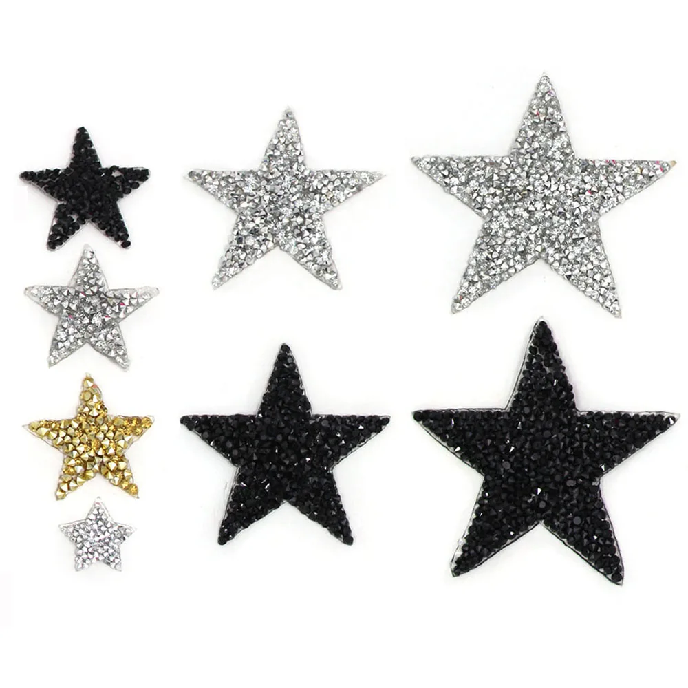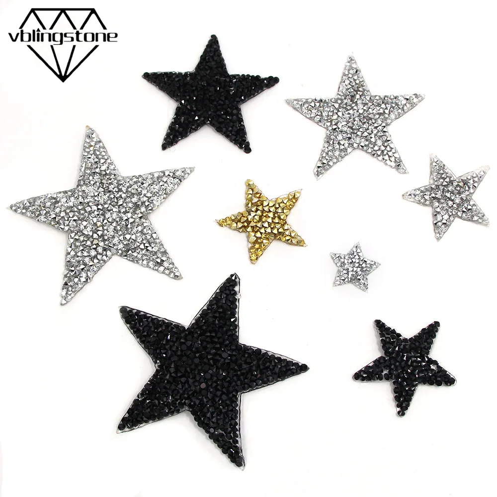 С нашивкой в виде звезды, горячая фиксация Стразы патчи для одежды Бесплатная доставка, золотистые, серебристые, черные, сверкающие стразы аппликации Утюг на DIY сумка брюки