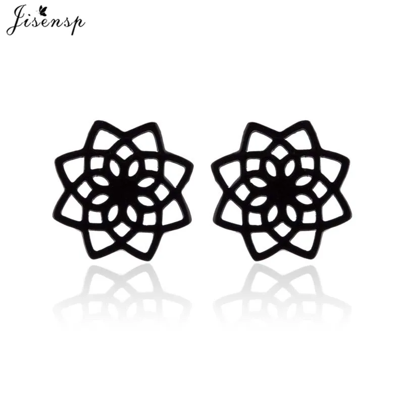 Серьги-гвоздики из нержавеющей стали для мужчин и женщин, геометрические украшения в стиле панк, простая мандала, месяц, сердце, ювелирное изделие в стиле хип-хоп, черные, 2021