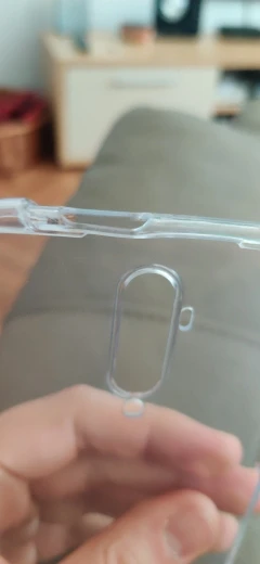 Есть небольшой кусок бумаги? Между материалом прозрачного чехла, который выглядит как что-то застревает на корпусе, пока он находится между ними и не может быть удален.