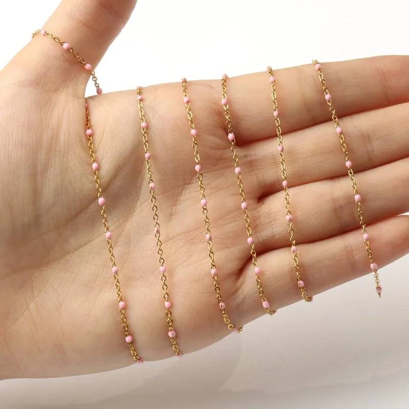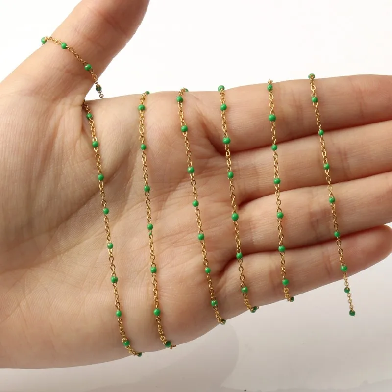 Позолоченная металлическая проволочная цепочка с розам, цепочка из нержавеющей стали, круглые бусины, цепочки для изготовления ювелирных изделий, браслет сделай сам, ожерелье, 1 метр