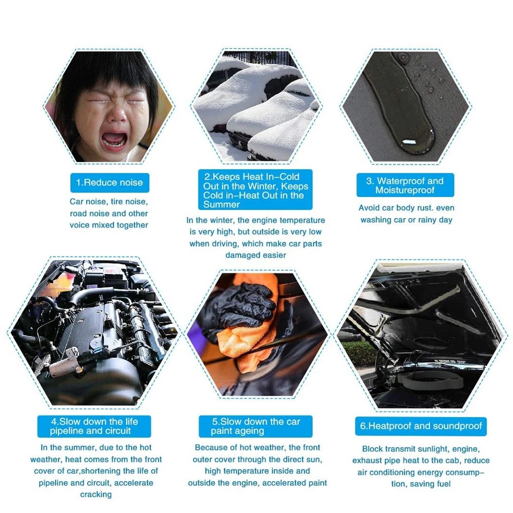 【Подходит For】 эта Звукоизолирующая пена идеально подходит для капота, потолка, двери, кабины Пол, задняя дверь, огнеупорная стена и U тип стены, переднее крыло, переднее и Задние колеса.【Блок Noise】эта изоляционная пена улучшит езду в вашем Автомобиль путем снижения шума двигателя, шиномонтаж, шум дороги, шум ветра и Значительно улучшит общее качество и звук транспортного средства Качество. С высоким шумоподавлением и теплоизоляционными свойствами, он Хорошая замена для старого, а также необходимая запасная часть для Ваш автомобиль.【Double Effect】а также улучшает акустику автомобиля, это высокая производительность Изоляционная пена гарантирует, что ваш автомобиль будет оставаться прохладным летом и Теплее зимой, что делает вашу поездку более комфортной. Устойчивы.【Водонепроницаемый И влагостойкий автомобильный изоляционный коврик изготовлен из высококачественного Материал с клейкой поверхностью, эта изоляционная пена легка Для резки, очистки и нанесения, и Он водостойкий и огнестойкий Защита от царапин. Поверхность с высоким содержанием клетчатки ткани из стекловолокна. Теплостойкость. Блок передачи солнечного света, двигателя, выхлопной трубы тепла Кабина, уменьшает энергопотребление кондиционера, экономит топливо.【Улучшенный Защита 1. Замедляет срок службы трубопроводов и цепей. Жарко в Летом, это может помочь передней крышке автомобиля рассеивать тепло, продлить Срок службы труб и цепей, а не ускоряет Растрескивание. 2. Замедляет старение краски автомобиля. Прямой солнечный свет спереди Внешний корпус, высокая температура внутри и снаружи двигателя, Ускоряет старение краски. Защищает краску от старения.Характеристики: