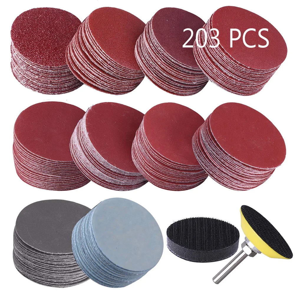 203 шт наждачная бумага костюм глинозема шлифовальная губка набор дисков 2 дюйма 14 металлические стойки от 80 до 3000 Грит шлифовальные диски инструменты для дома