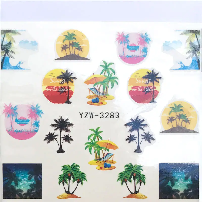 Наклейки для дизайна ногтей пляжные кокосовой пальмой DIY воды ползунки маникюр декор акварель, аксессуары для украшения ногтей, недорогие наклейки на ногти
