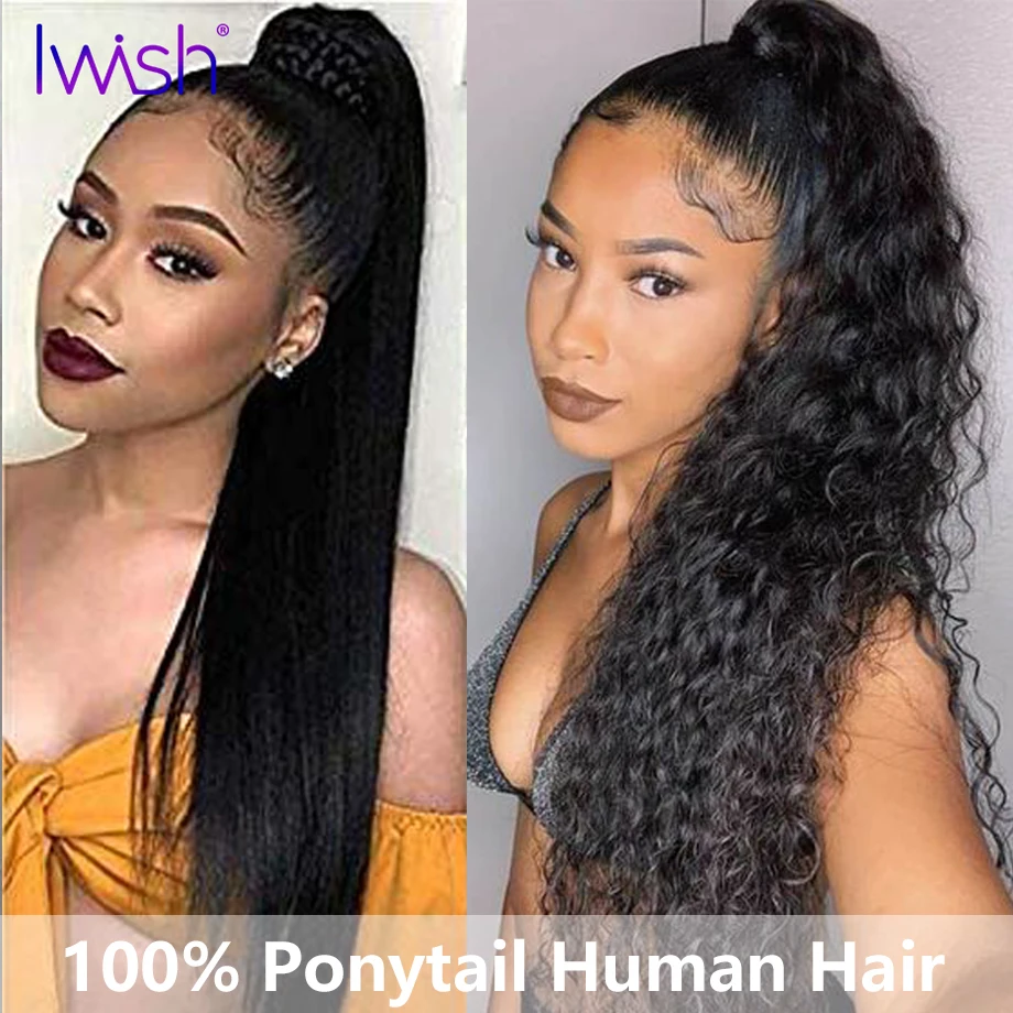 Женские Накладные человеческие волосы с кудрявым хвостом, 8-28 дюймов
