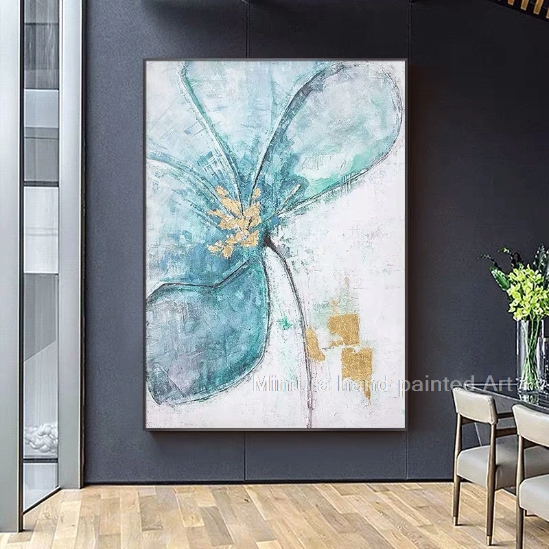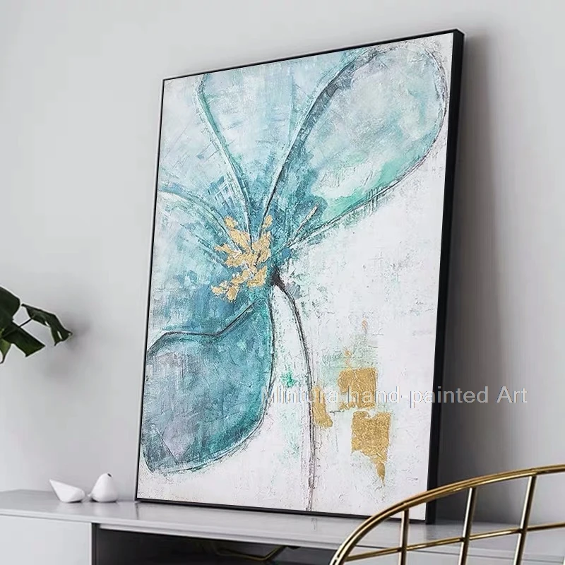 Mintura картина маслом на холсте ручной работы, современная абстрактная вода, синие цветы, Настенная картина для гостиной, домашний декор, большая