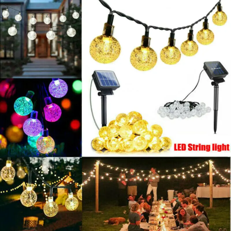 СВЕТОДИОДНЫЕ гирлянды на солнечной батарее 5 м7 м12 м22 м, гирлянда с хрустальными шариками, сказочные огни, Рождественское украшение для свадьбы, вечеринки, сада, улицы