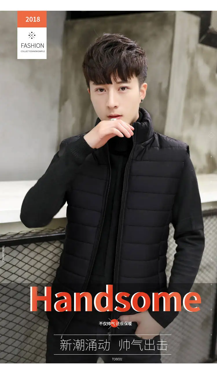 Мужская куртка без рукавов Осень-зима пуховая хлопковая жилетка одн...