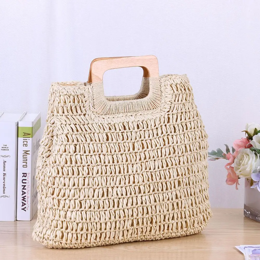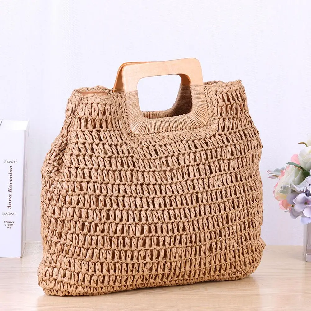 Женская винтажная Соломенная Сумочка, богемный пляжный саквояж ручной работы, вместительный чемоданчик из ротанга, подходит для путешествий, лето