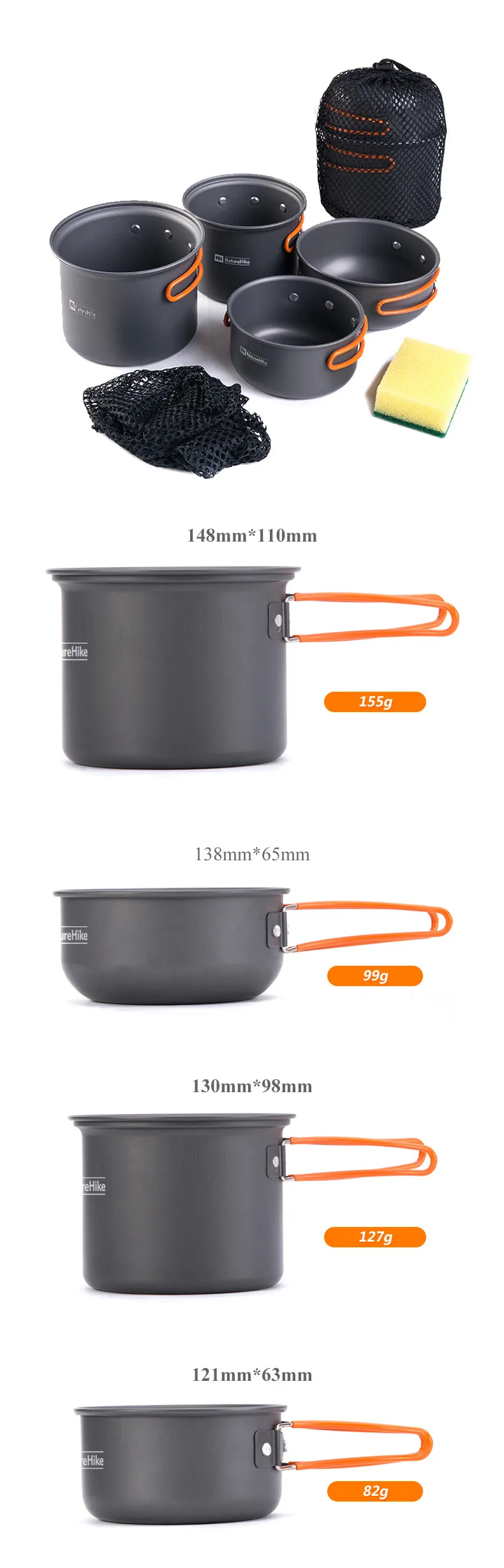 Naturhike-новая Ультралегкая уличная посуда для кемпинга, кухонная утварь, четыре комбинированные кухонные принадлежности, посуда для пикника, миски, кастрюли, набор кастрюль