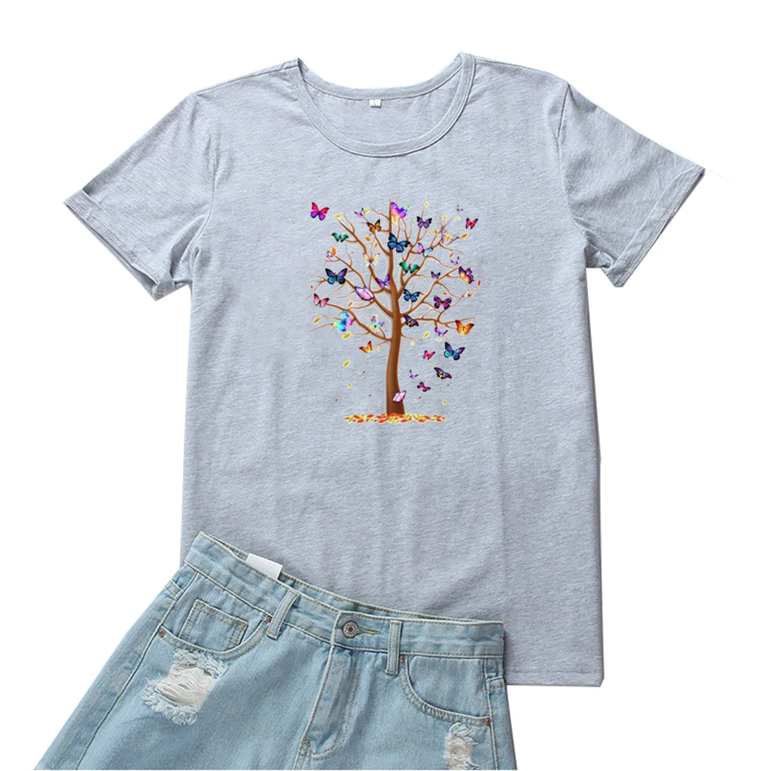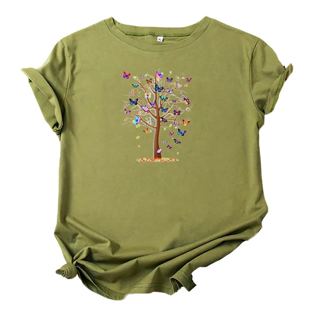 Бабочка дерево футболка для женщин эстетические, Детский костюм-тройка для женщин Забавный круглый Детский рюкзачок средства ухода за кожей шеи для женщин футболки Harajukuодежда футболка, женские топы