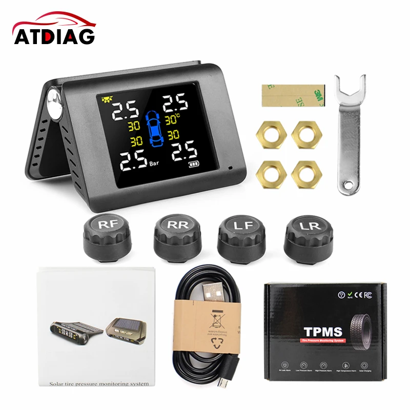 Система мониторинга давления в шинах с ЖК-дисплеем, на солнечной ба...