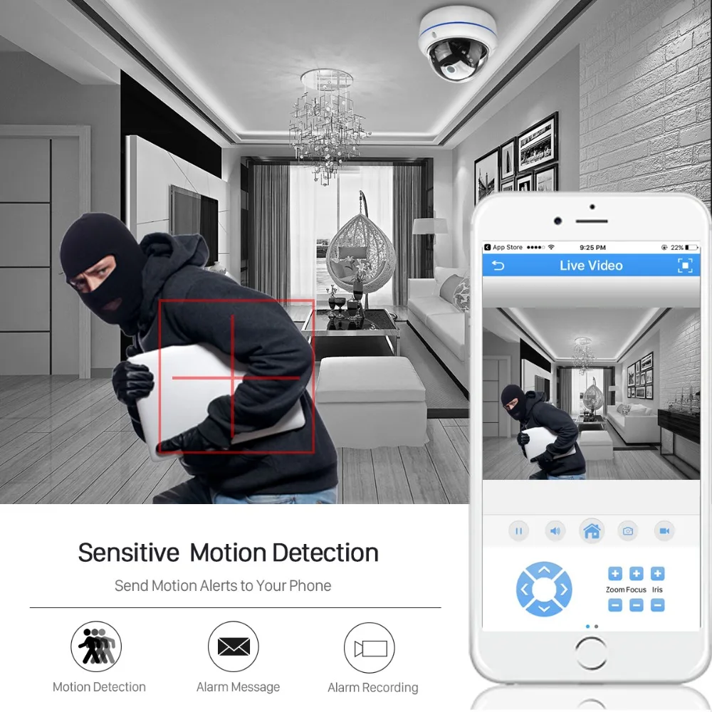 Обнаружение движения через электронную почту или мобильное уведомление.Настройка определенной зоны обнаружения движения и Настройка чувствительности обнаружения движения.