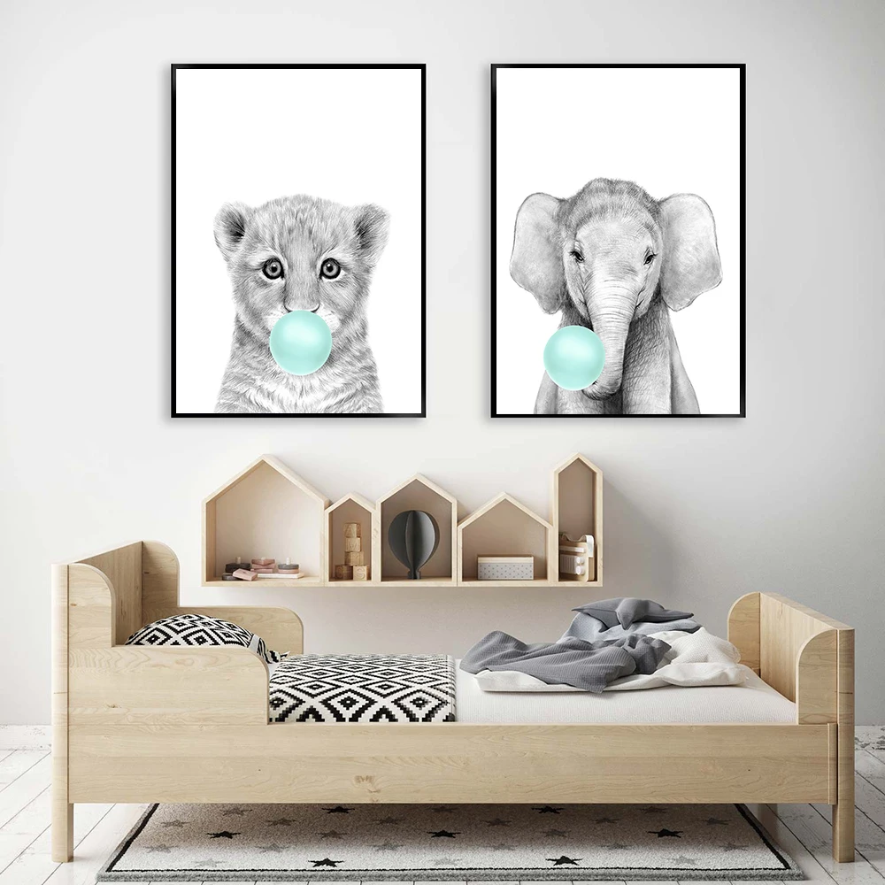 Nordic плакат слон Moon холст картины стены искусства Детские плака...