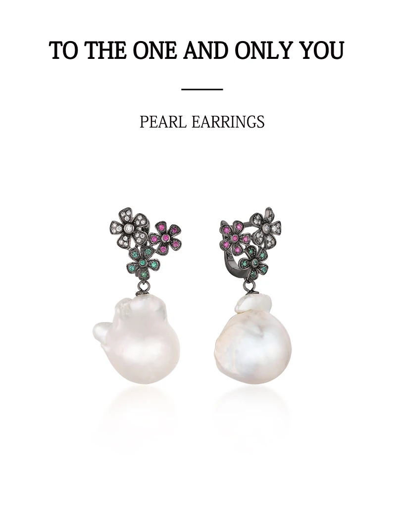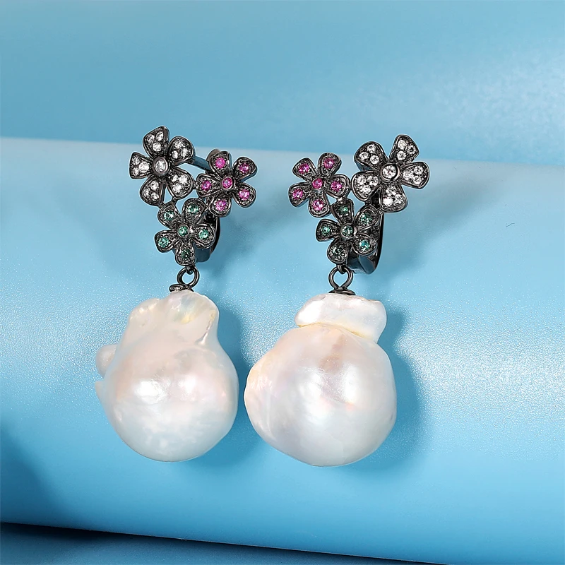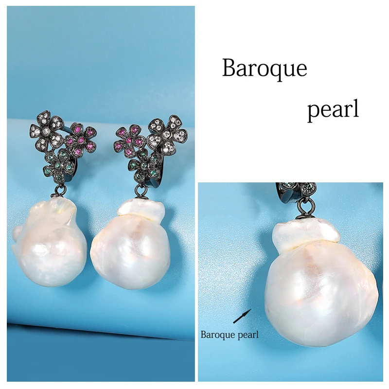 Laya 925 стерлингового серебра из натурального жемчуга в стиле барокко, свисающие серьги для женщин, серьги высокого качества циркония цветок красный зеленый нано-ювелирные изделия