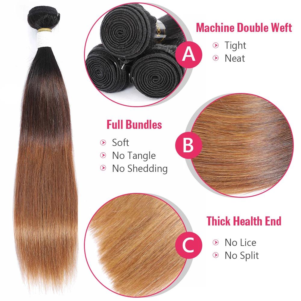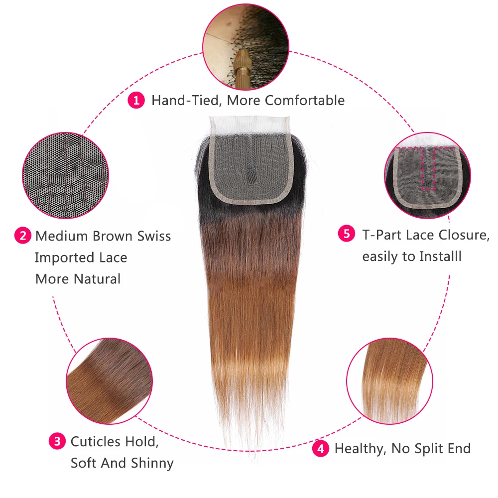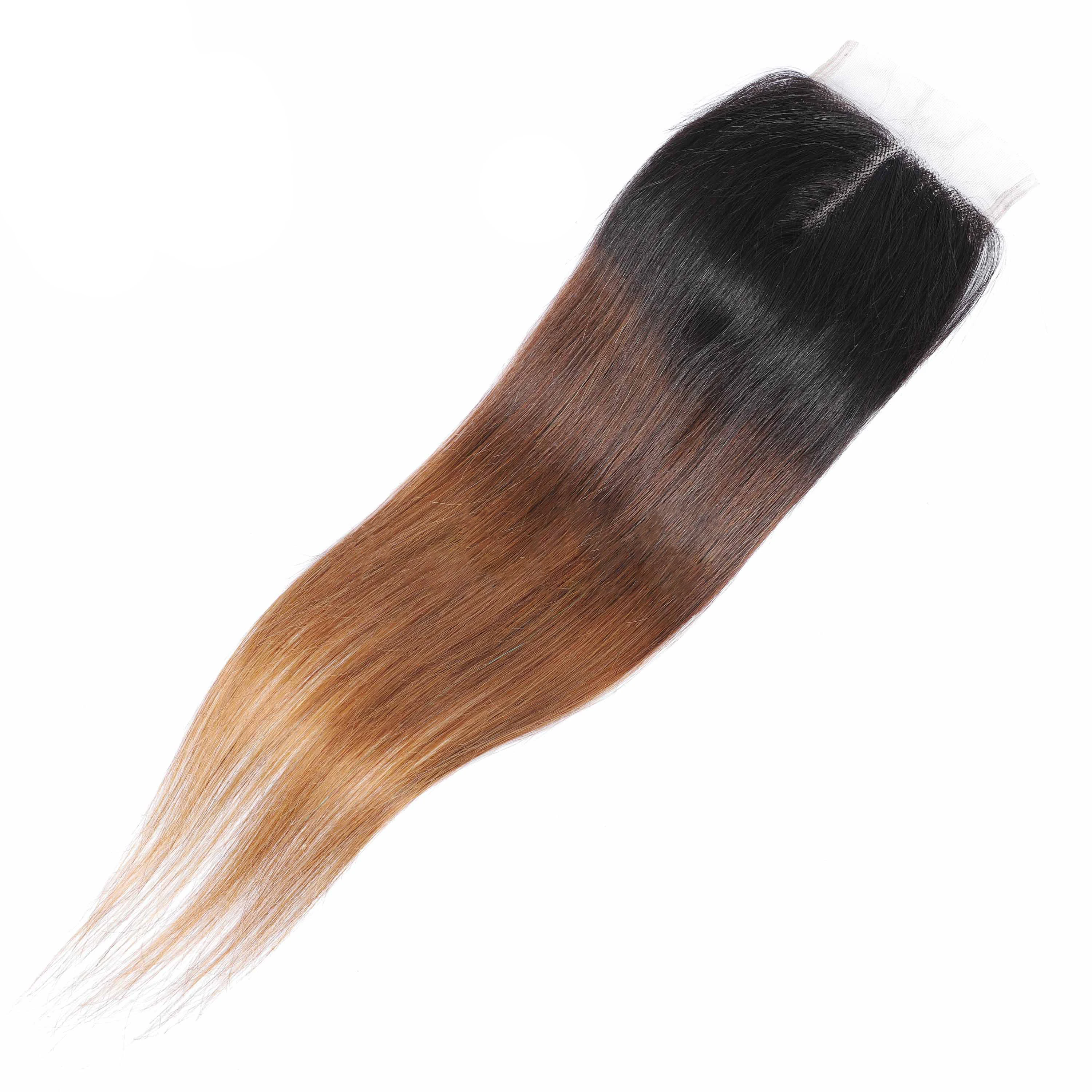 Прямой 1B/4/30 пряди с закрытием бразильские эффектом деграде (переход от темного к пряди с закрытием 100% Волосы Remy T Прата застежка с пряди королева