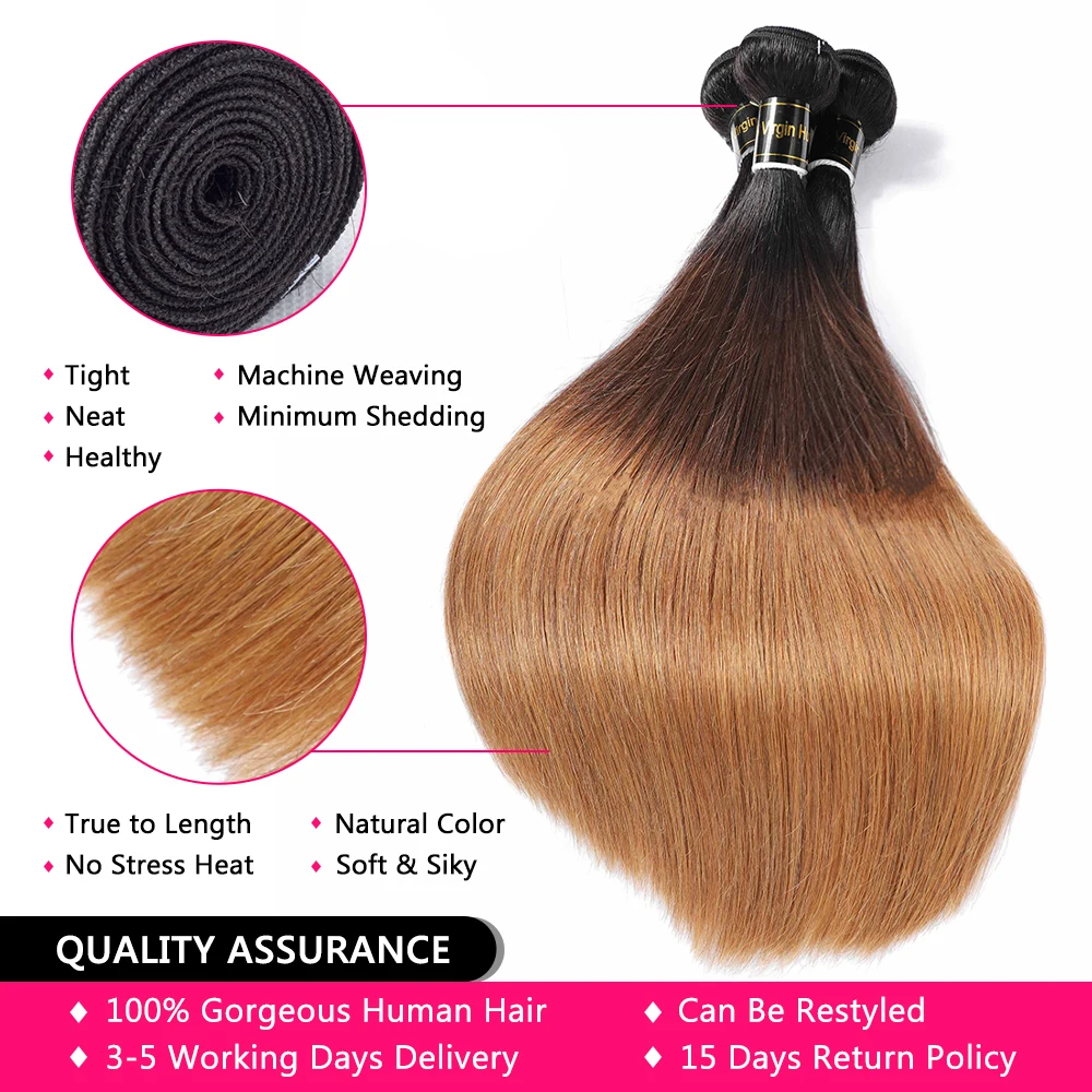 Прямые Пучки 1B430 Ombre с застежкой, бразильские пряди с застежкой, 100% неповрежденные волосы, T-образные пупряди с застежкой, QUEEN