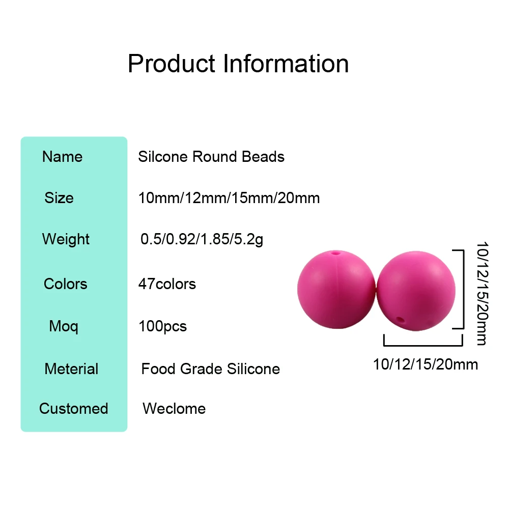Силиконовые бусины для прорезывания зубов-это в основном ювелирное изделие для ожерельяПрорезыватель для зубов для младенцев и кормящих мам.Материал нашего продукта100% BPA бесплатноКачество едыСиликон. Это полностьюНетоксичный,И одобреноFDA/ SGS/LFGB и ЕС прошли.Мягкие и жевательные силиконовые бусины для малышей. Наши силиконовые бусины можно легко чистить, вы можете поместить их в микроволновую печь для дезинфекции! Доступна любая форма, цвет-это ваш выбор, и размер может быть изменен.