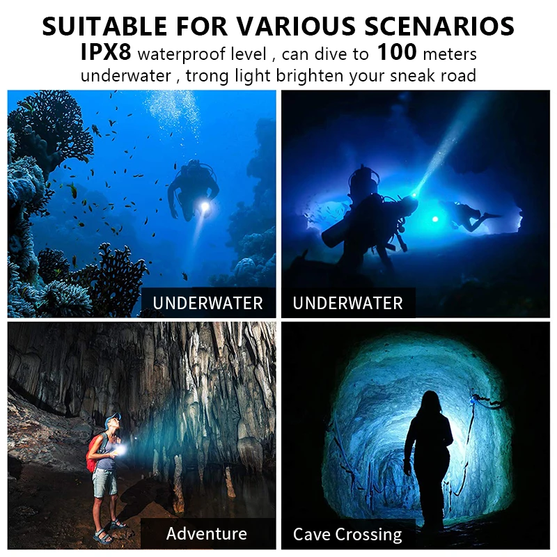 Подводный водонепроницаемый светодиодный фонарик для подводного плавания
